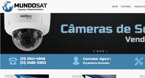 Projeto de desenvolvimento do site institucional da empresa MUNDOSAT especializada em segurança patrimonial eletrônica.