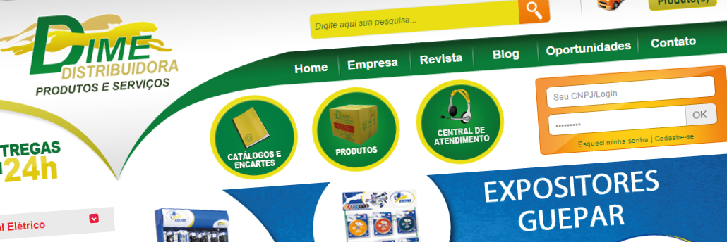 Projeto de desenvolvimento do site da empresa Dime Distribuidora, distribuidora de materiais de construção.